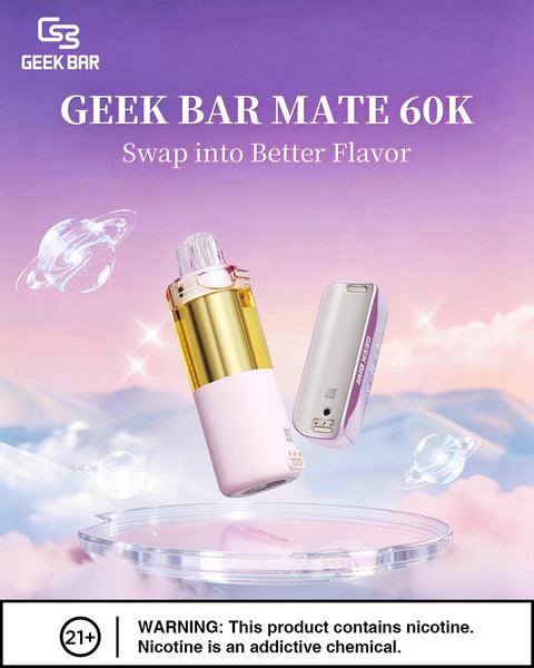 The Geek Bar Mate 60K Disposable Full Kit combines high-capacity performance with a flexible pod system. Its transparent, pre-filled pod allows you to monitor e-liquid levels, and it is compatible with Foger Switch Pro pods for additional flexibility.